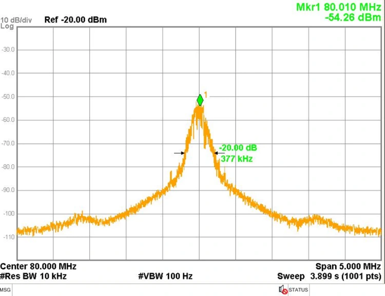 Ширина линии 3 дБ = ширина линии частоты биений 20 дБ/20