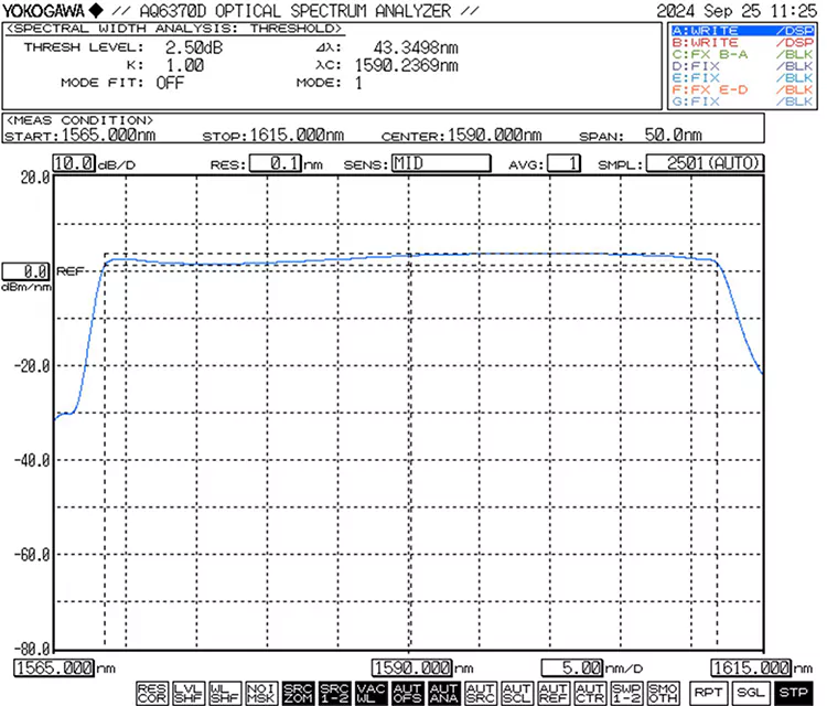 Højkvalitets lyskilde Bredbåndslyskilde ASE L+ række 1568–1611 nm med effekt op til 200 mW fra den kinesiske producent Box Optronics. ASE L+ 1568-1611 nm bredbåndslyskilde, op til 200 mW, dækker fuldt ud 1568-1611 nm L+ bølgelængdeområdet. Spektralområdet overstiger 40nm, og den spektrale ensartethed er bedre end 2,5dB. Udgangseffekten af single-mode fiber overstiger 200 mW, hvilket er velegnet til applikationer som fiberoptisk kommunikation og fiberoptiske sensorer.