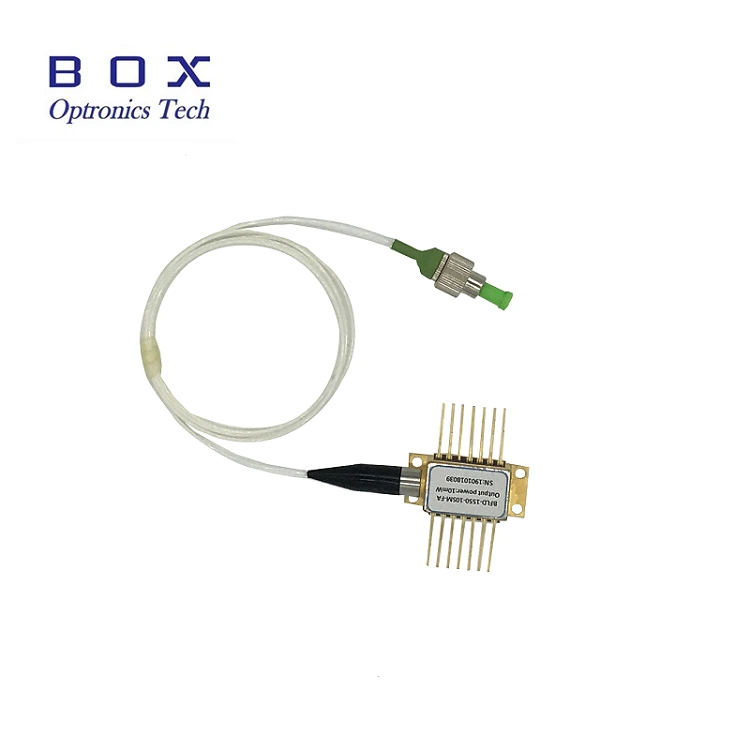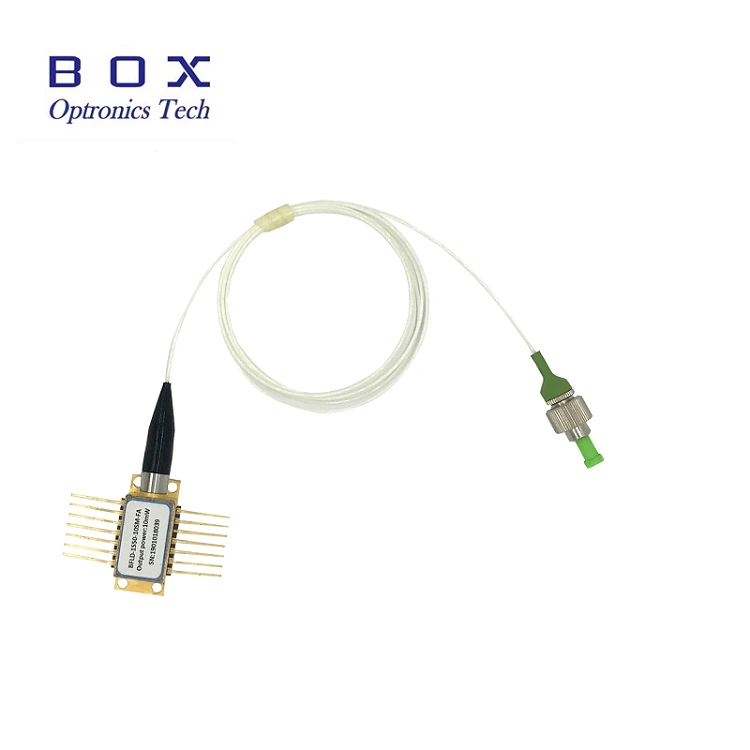 Høj effekt 1550 nm DFB-fibrøs-bundet laserlaser-sommerfugllaserdiode bruges hovedsageligt som et optisk signal til den optiske forbindelse af store kapaciteter over lange afstande såvel som i en lang række nye anvendelser, såsom fiberprobing, 3D-nonding, gaslyd og diagnose af sygdomme, såsom respiratorisk og vasculær overvågning. I området med gaslydende bruges det som en lysskilde til gassensorer, der detekterer methan lækker rundt om fabriksrørene. Boxoptronics giver DFB-LD bølgelængder fra 1270 nm til 1610 nm, som bruges i forskellige applikationer. Boxoptronics DFB-LD-moduler svarer til ROHS-direktivet. Modulet har en 14-polet form af sommerfuglen og inkluderer TEC til temperaturkontrol og PD til en optisk outputmonitor.